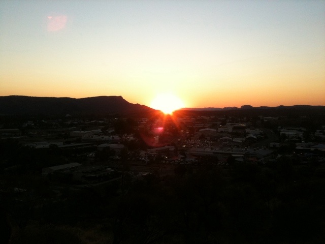 Jag har även bytt bort trånga gränder mot köpcentrum, vällagad mat mot snabbmat och hetsig trafik mot road trains. Solnedgång finns det däremot om än över bergskedjor istället för havet. Jag knatade upp på Anzac Hill (varje representabel stad i det här landet har en utsiktspunkt att klättra upp på) där jag fick en 360 gradig översikt av staden samt uppleva en fin solnedgång.