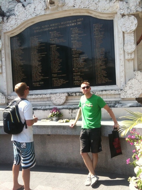 Det kändes lite vemodigt att se monumentet. Det påminde om en av mina värsta nätter då jag för nästan nio år sedan (12 oktober 2002) visste att min syster precis anlänt till Kuta och tidningarna skrev om att staden var sprängd i bitar. Som tur var slutade det lyckligt för min familj men fem st svenskor förlorade livet och finns nu namngivna på platsen.