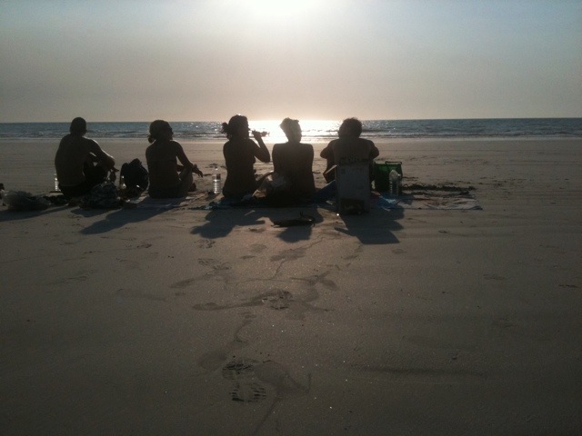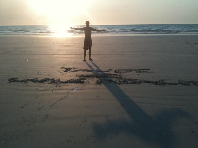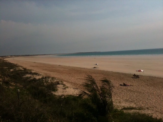 Väl framme i Cable Beach drog jag på mig löparskorna och sprang ner till stranden. Med en skönt fläktande saltvind i ansiktet och vågornas brus i öronen sprang jag utmed stranden i eftermiddagssolen. Väl tillbaka på vandrarhemmet var det happy hour. Gänget som varit med på resan från Darwin samlades, beställde pizza och gick förbi liquer store där vi köpte ett par lådor öl. Vi satte oss på en grässlätt under en palm, solen hade gått ner och under gatlampans sken blev vi fulla, glada och mätta.