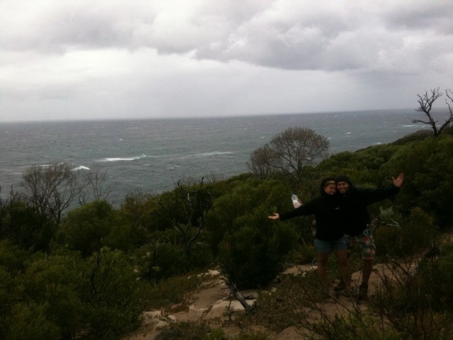 Idag har vi handlat och preppat inför tjejernas ankomst. Vi möttes upp vid Cape Naturaliste med lunchen klar. Därefter tog vi en vindpinad promenad för att leta efter valar. Det är valsäsong just nu och blåvalar och knölvalar passerar udden med sina ungar på jakt efter mat i närheten av Antarktis. Det var svårt att se bland bränningarna som vinden piskade upp men till slut, under stor upphetsning, kunde vi se valsprut och ett par valar som hoppade i vågorna. Häftigt!