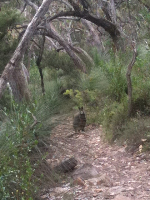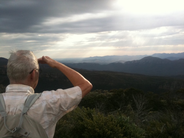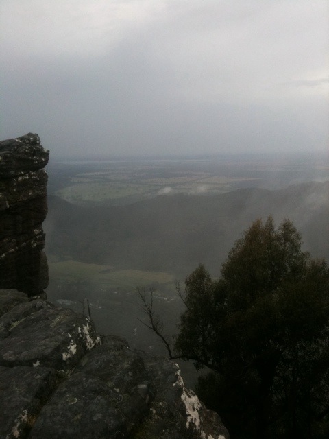 Vårt mål var Grampians national park. På vägen dit åkte vi igenom ett rejält oväder där regnet kom från sidan. Inget bra väder för vandring. Vi stannade till vid Visitor centre och frågade om väderleken och han tittade ut och sa att, ”ja det regnar ju”. På vägen igen började det dock skina upp och vi valde att göra Picaninny som första vandring. Luften hade nu lättats lite och det blev en skön vandring i shorts och t-shirt upp till toppen. Far som ännu inte sett någon känguru höll på att snubbla över en klippwallaby som satt och käkade på stigen. Utsikten över åkerlandskapet var fin och med kängurur i skogen och blommande växter fick vi oss en fin start på våra vandringar.