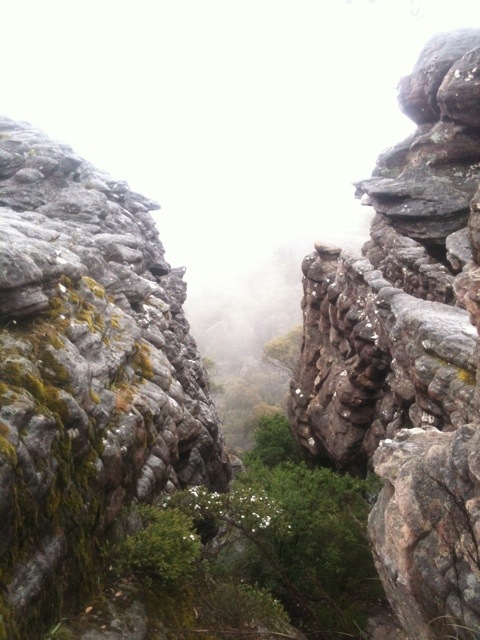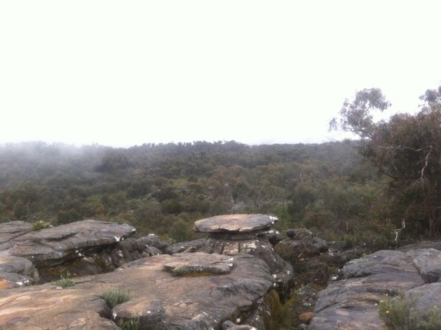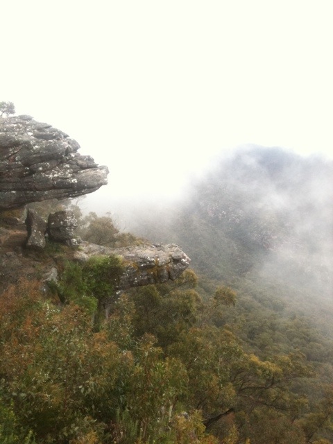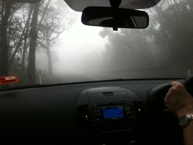 På vägen tillbaka mot Halls Gap hade molnen bestämt sig för att lägga sig på vägen och vi fick smyga fram genom dimman.