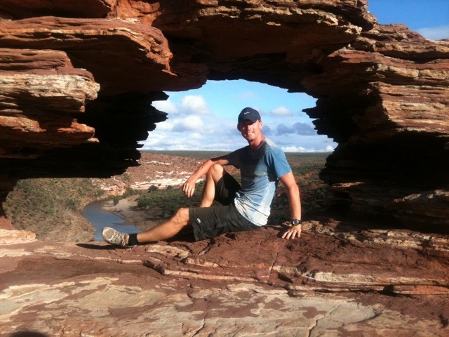 Eftermiddagen spenderade vi i Kalbarri National Park. Murchison river har grävt ur en dramatisk flodfåra genom landskapet och nationalparken bjuder på vackra vyer, färgranna blommor och rikt djurliv. Vi åkte till Z-bend lookout och The loop lookout. Den senare har en plats kallat Natural window. Det är en klippa som är urgröpt och genom den ser man ut över floden och landskapet, som ett naturligt fönster. Det är ett känt fotomotiv som bland annat Peter Lik har gjort vackra tavlor av. Tyvärr hade vi bara en halvdag här. Enligt guideboken borde man spendera mer tid för vandringar i detta landskap som de påstår är ett av de vackraste i hela Australien vilket jag kan hålla med om.