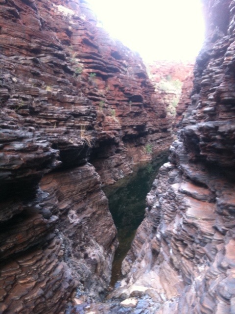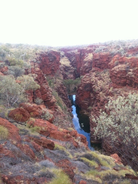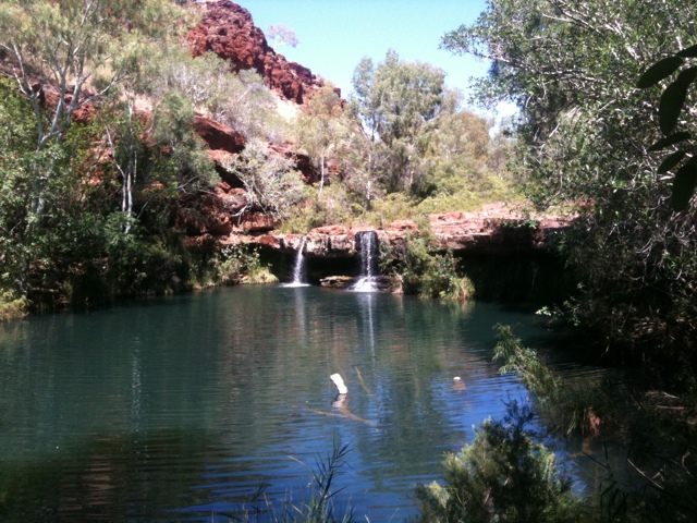 Vår andra dag i Karijini gick till Fortescue falls. Dagens utflykt liknade mkt de vi gjorde i Kimberley förutom att vi nu inte var ensamma och att vi startade dagen ett par timmar senare. Promenaden var vacker och vattenhålen svalkande.