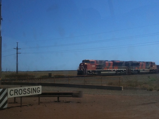Vi passerade Port Hedland som är en stor gruvort. Vi fastnade vid järnvägsövergången då ett tåg med sisådär 250 vagnar passerade. Australien producerar 400000 miljoner ton järnmalm om året och stora delar kommer från Western Australia. Arbetet inom gruvdrift genererar inte bara stålars till landet (@Magnus, rätta mig om jag har fel men ett ton är värt ca180 AUD dollar), det ger också pengar till arbetarna så priserna på västkusten är höga, framförallt på boende. Guld, diamanter och uran är stora exportvaror också. I Port Hedland är det främst järnmalm och salt som skeppas ut.