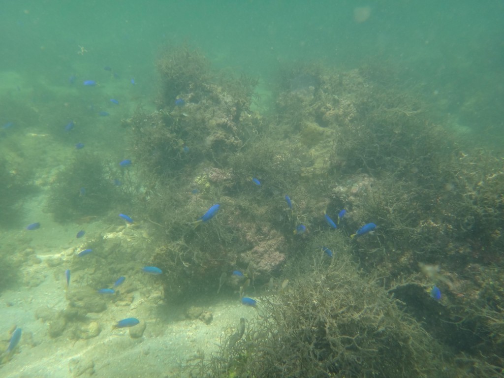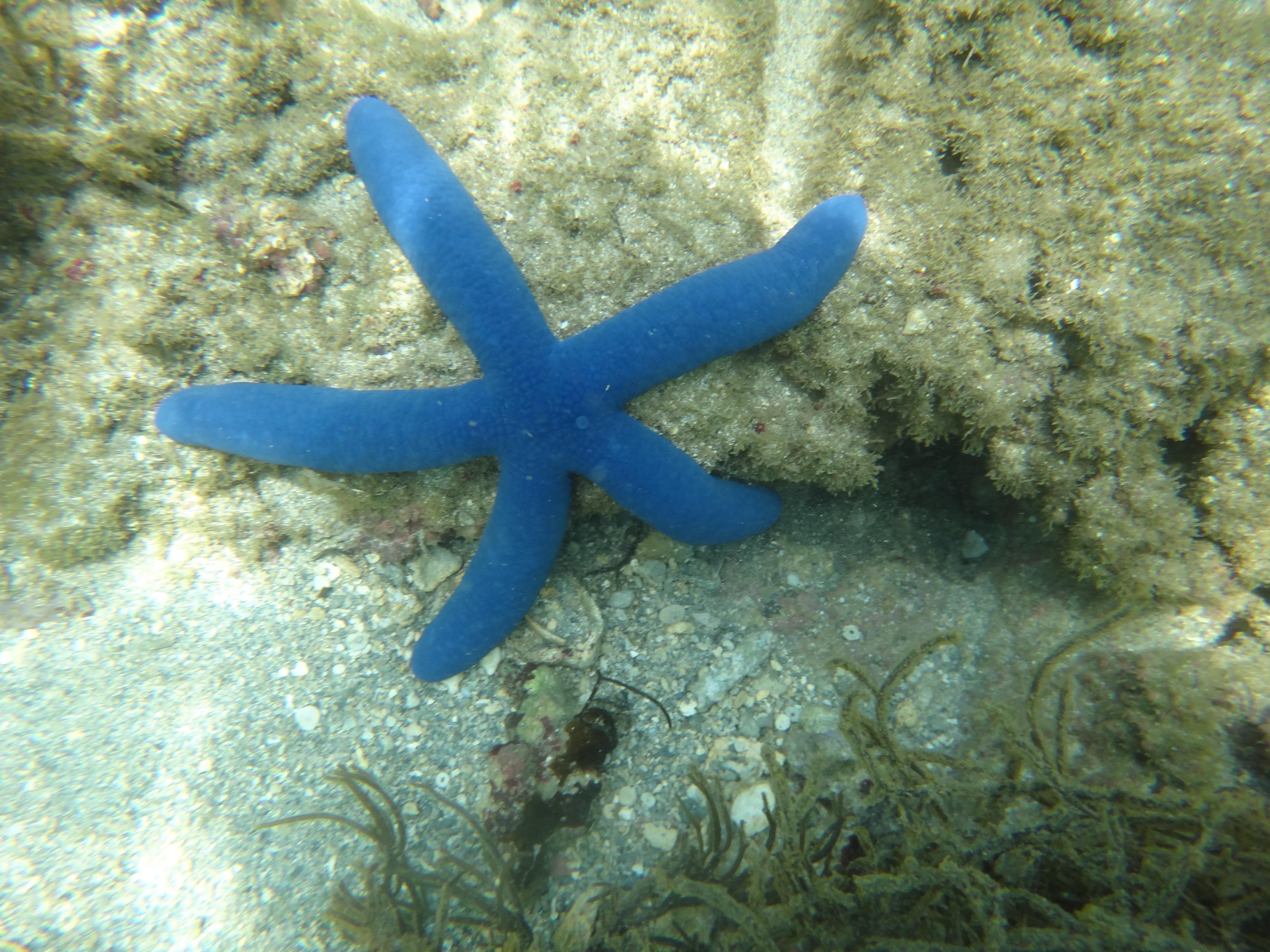 Annars idag då? Det har varit en fin dag. Solen och vindarna har varit varma och endast några stackmoln. Jag började morgonen med en omgång bloggande. På förmiddagen tog jag en snorkeltur. Vi tog båten en bit ut på revet för att komma från allt skräp och skitigt vatten. Sikten var OK men inte bra men jag såg bland annat en havsorm, små fina akvariefiskar och mängder med blåa sjöstjärnor. Innan lunch tog jag också en kort löprunda barfota utmed öns strand medan det var lågvatten. 1,6 km visade GPSen.