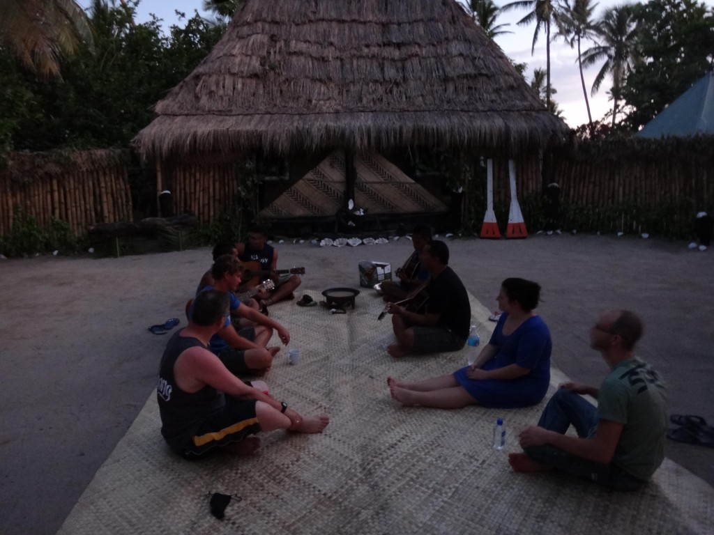 Fijianerna gillar kava, eller de dricker det mycket iaf, så som vi gillar alkohol. Just nu tömmer de resterna efter ceremonin medan jag krupit in i mitt lilla krypin. Ibland hörs det lite handklappning och ”bula”-rop. Det är ingen alkohol i men det ryktas att man kan både bli beroende och hamna i nåt ”dåsigt” tillstånd. Bäst effekt om man dricker det flera dagar i rad. Själv var jag glad att jag bara behövde ta två skålar ”low-tide”, dvs små portioner (high-tide är motsatsen) av den grumliga drycken.