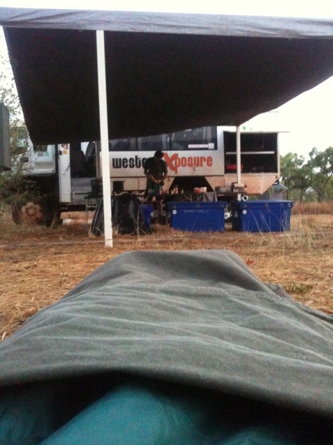 Vi rullade vidare västerut och halvsovandes vaknade jag till av att vi stod mitt ute i terrängen. Dags att samla ved till kvällens brasa och Richard testade fyrhjulsdriften genom att helt enkelt köra rakt ut från vägen och över ett träd som vi slängde upp på taket 🙂