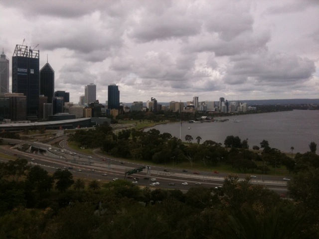 Efter att ha tagit adjö av mina nyfunna vänner checkade jag denna natten in på hotell. Dags för lite ”flashpacking” som det heter. På kvällen mötte jag upp holländskan Renska som jag träffade på turen upp till Darwin. Vi fick även ett par timmar ihop under förmiddagen idag och tog en mulen promenad upp till parken Kings park. Som tidigare sagt har alla respekterade städer i Australien en kulle varifrån man kan se ut över staden. Kings park är kullen i Perth. Tyvärr mulet och blåsigt idag så tyvärr inga bra foton över staden eller Swan river som skär genom stadsmiljön.