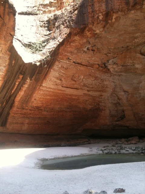 Under tiden vi var borta hade gruppen kommit fram till att om de blev utan mat skulle de äta upp Johan först. De skulle övertyga mig om att det var ett bra val så att jag kunde utföra dådet. Sedan skulle de äta upp mig då jag konsumerar för mkt mat. Börjar likna Robinson det här 🙂 Skulle vara skönt att rösta bort en och annan från bussen men annars är det ett nytt skönt gäng. Vi börjar känna varandra rätt bra, om inte annat för att vi sitter och mer eller mindre flyter bort i bussen då ac:n inte varit igång på ett tag, tex efter våra promenader. Vi drar lättnadens suckar när vi får komma ut i 35 gradig värme utanför bussen och svalka oss. Man svettas oerhört mkt och vätskekonsumptionen är livsviktig. Man bäljar i sig litervis med vatten om dagen. Här ute finns det inga vattenledningar så allt behöver tas med på bussen. Vattnet blir snabbt varmt och ganska osmakligt men man ser till att hälla i sig det ändå. Som tur är är kvällarna svala. Inatt sov jag tom med mössa för att mysa till det lite extra 🙂 Insekterna har varit snälla och jag har inte lidit ont av varken myror eller mygg, än så länge, knack knack. Såret läker och det räcker numera med plåster. Sista dagen på kuren och imorrn kan jag äntligen ta mig en svalkande öl (ja ölen prioriteras i kylboxen). Helkroppsbadandet dröjer nog ett tag till men här ute finns det inte mkt badställen ändå, inte ens en dusch ju. Härligt dammig, svettig och lycklig över att uppleva Outbacks mäktigaste platser rullar vi nu mot kvällen camp och ännu en natt under stjärnorna.