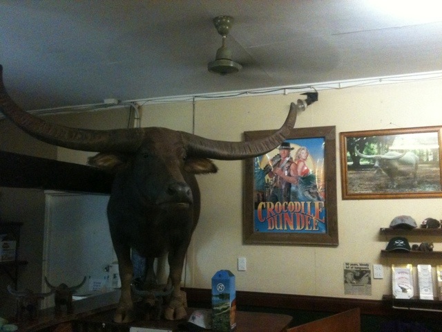 Denna dag avverkade vi 70 mil! Vid varje mack vi stannade vid fanns det minnen om förbipasserande, någon samlade tshirts, andra kepsar, nån på allt möjjligt. Fick där en hel hög med massa svenska prylar upplagt på bardisken när jag sa att jag var från Sverige. Barntvål, en gammal sedeltia mm. Knasigast var kanske ”thong garden”, dvs en trädgård full med flip-flops. I Renner Springs hittade jag ett urklipp ur tidningen ”Bacon busters” om en 220kg gris. I Adelaide River fanns filmstjärnan Charlie uppstoppad. Han spelade vattenbuffel i Crocodile Dundee. Det är roligt att bara stanna till en stund och läsa och titta på alla hak utmed vägen.