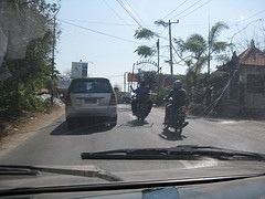 Mer än hälften av fordonen är motorcyklar. De kör om på både insidan och utsidan så fördel om man har sidospeglar på båda sidor om bilen. Allt från småflickor skjutsandes sina syskon (ja plural) till tandlösa gammelfarfar kommer farandes på motorcyklarna. Ofta kan man se turister sönderskrapade eller med stora bandage över knäna. Dock aldrig sett någon Balines, misstänker att när de förolyckas så är det nog inte bara knät som ryker. Och just det, var och varannan motorcykel har speciella hållare för surfingbrädan, såklart.