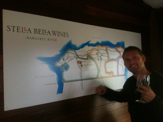 Vi började dagen med att utforska Margaret River och dess utmärkta vingårdar. Jag och Claudia fick var sin ”designated driver”. Anna och Mark fick småsmutta på vinerna. Alkoholgränsen för bilkörning är 0,5 promille i Australien så det finns utrymme för en liten slatt iaf. Men jag och Claudia sparade inte på oss. Vi började på Leeweun Estate. Stort, flådigt och ett av de mer berömda i trakten. Roligt då vi inte hade nån aning utan bara svängde av vägen lite på måfå och frågade var de var för ena Nästa ställe, Stella Wines, var betydligt mindre men vinerna inte sämre för det.