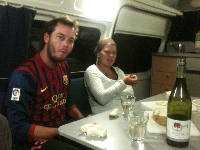 Kvällen blev en återbjudning från tjejernas sida med en massa god mat (fisk) och fina viner från traktens egna vingårdar. Allt frid och fröjd om det inte varit för det sketna vädret och den numera fiskdoftande husbilen :p