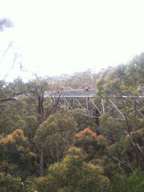 Nästa morgon fortsatte vi vår fascinerande resa genom storskogen. Vi spanade in The giant tingle tree och dess fot med 24m omkrets. Vi åkte därefter till berömda Tree top walk där man kan gå på en bro högt uppe bland trädkronorna. Betydligt säkrare än gårdagens klättring, dock inte helt gratis. Men vi har alla blivit förälskade i träd efter dessa dagars utforskande 🙂